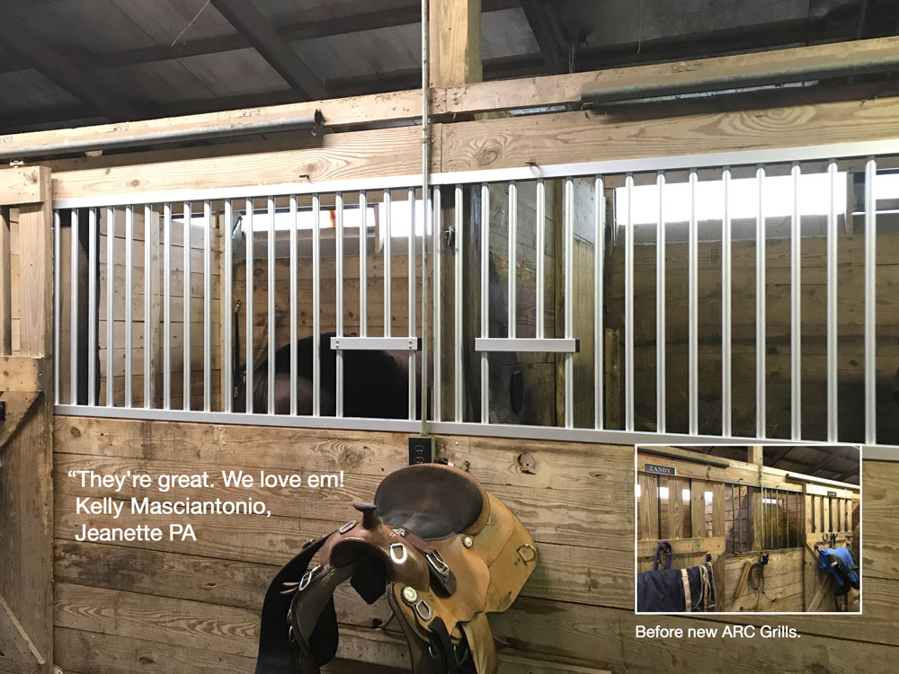 “As you know, I did a lot of research before deciding on your stall products. I have seen many horse injuries over the years caused by unsafe environmental conditions. I even had one of my own horses get a back leg hung up between the bars of a stall we had constructed from another company. I did not think there was any way a horse could get a hoof between those bars, but that mare did, and it ended her career. The spacing of the bars in your stall grills was a major deciding factor in my decision to buy ARC stalls. The stalls we constructed 3 years ago still look new today. The finish does not rust or dull or start to look old. We are building more stalls in a new barn and would never consider using anything but ARC stalls! Thank you for making a product that is safe, functional and beautiful.”