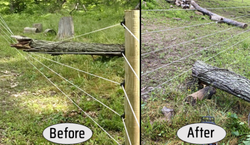 “I want to praise this product. Just yesterday there was a storm that blew off a 25ft. tree limb from well over 75ft up the tree. This limb landed on my 5 strands of fence and had smashed the fence lines to the ground. Well once the limb was cut the fence snapped right back, AMAZING!!!! Even with 1 of the 5 strands having a joint splice in it.”