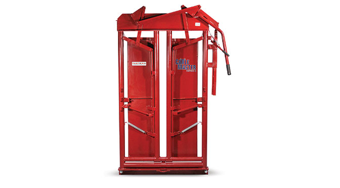 Available with either a manual or an automatic headgate, the CattleMaster Series 6 features a durable, corrosion-resistant powder-coat finish. This series also features a high-mount, single lever, double sided squeeze mechanism with heavy duty linkage to keep animals firmly in place.