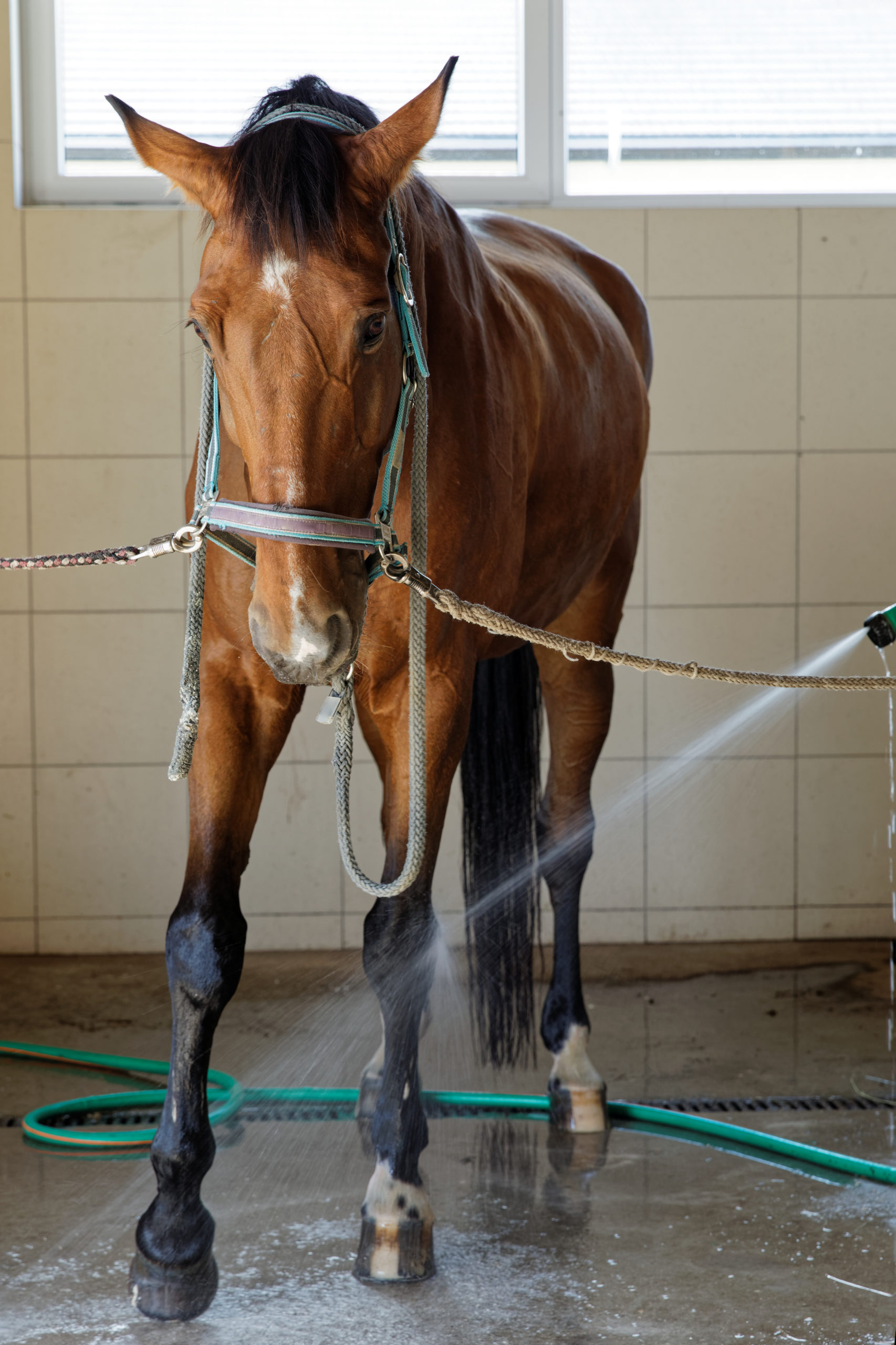 When it comes to interior spaces, a wash area with light colors on the walls will make it more appealing for the horse to come into the space. It can also make it easier to see what you are doing. However, if you want to make the most of the space, good, safe lighting is important. Lighting needs to be fully sealed and waterproof. Lighting on either side of the bay will prevent shadows unlike overhead lighting. This will make it much easier to ensure that you are accomplishing the job of getting your horse as clean as possible.